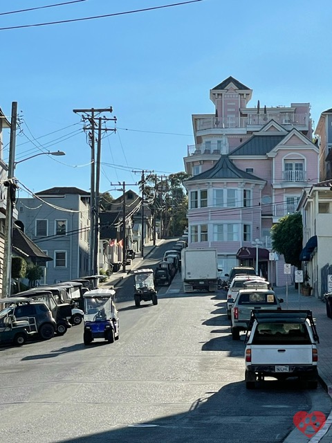 Given our love for urban staircases, of course we set off to find a way uphill for the views. We found the driveway of the house with the conical roofed tower, but could not get any closer. Later I used google to determine it was called the Holly Hill House. So we decided to ascend further to the next terraced road, finding several public staircases to aid us. There were many beautiful rental properties along Middle Terrace Road, and we walked to the end of it for a fantastic view.With no time or readily evident method to ascend to Upper Terrace Road, we headed back down to the pier. The public restroom stall doors were really secure.