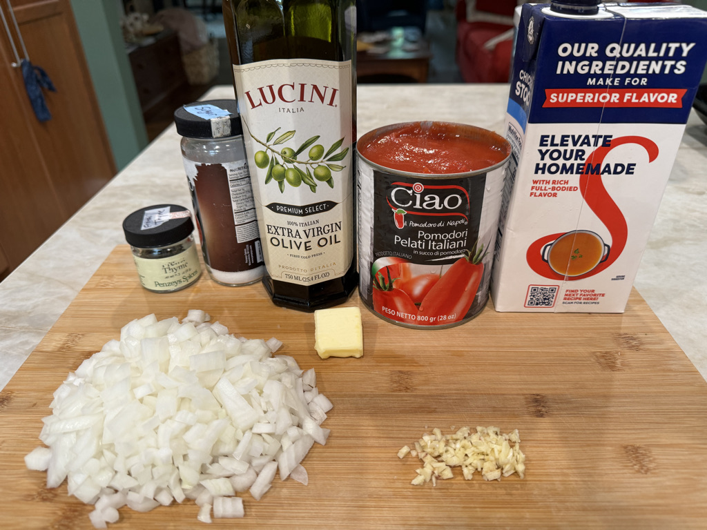 This delicious and easy tomato soup is so smooth and velvety that it does not need cream, although it is easy to add a spoonful of creme fraiche, plain yogurt, sour cream or goat cheese when serving. We enjoy this with grilled Longhorn Colby cheese sandwiches, ideally on semolina bread.